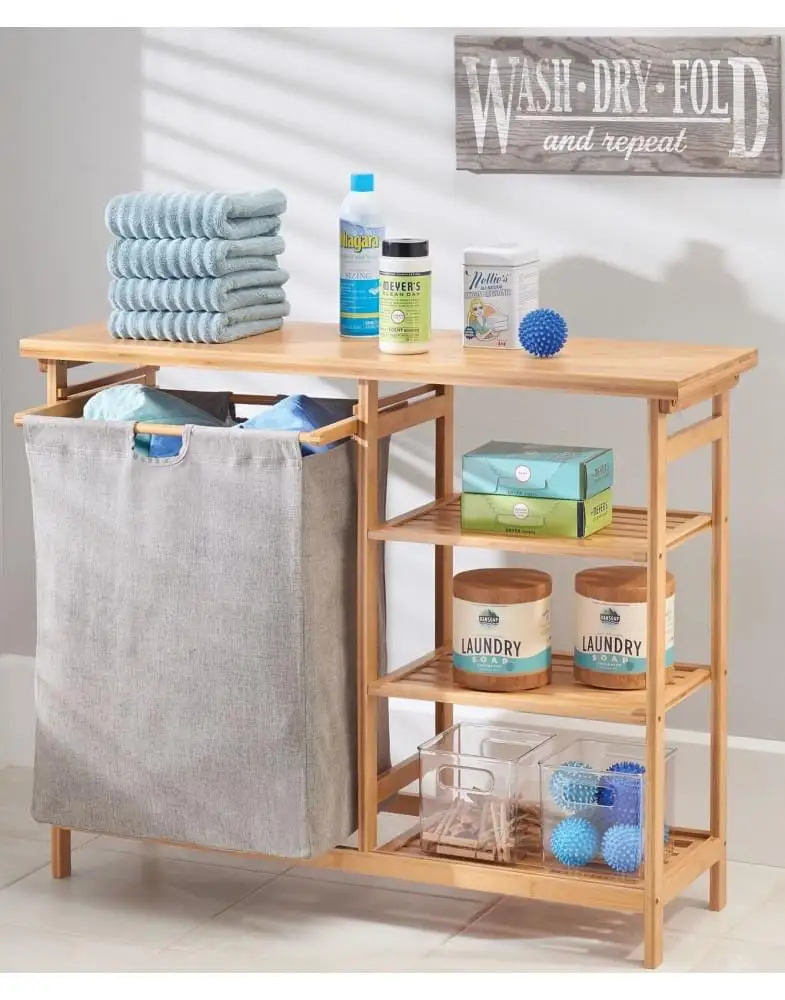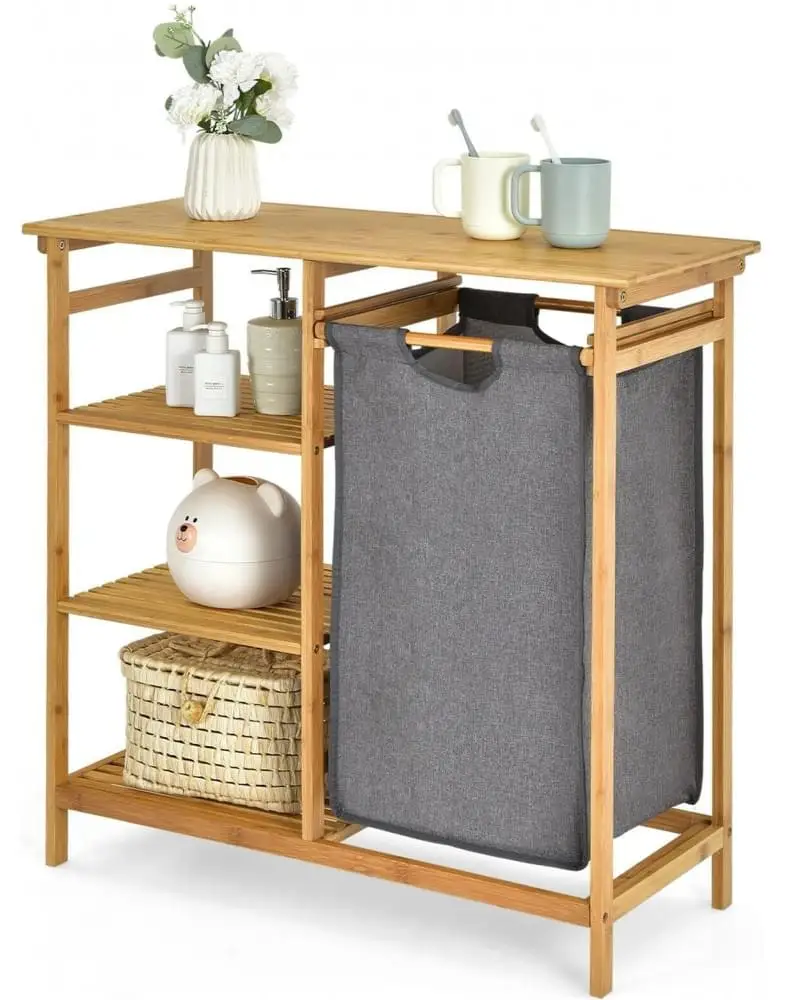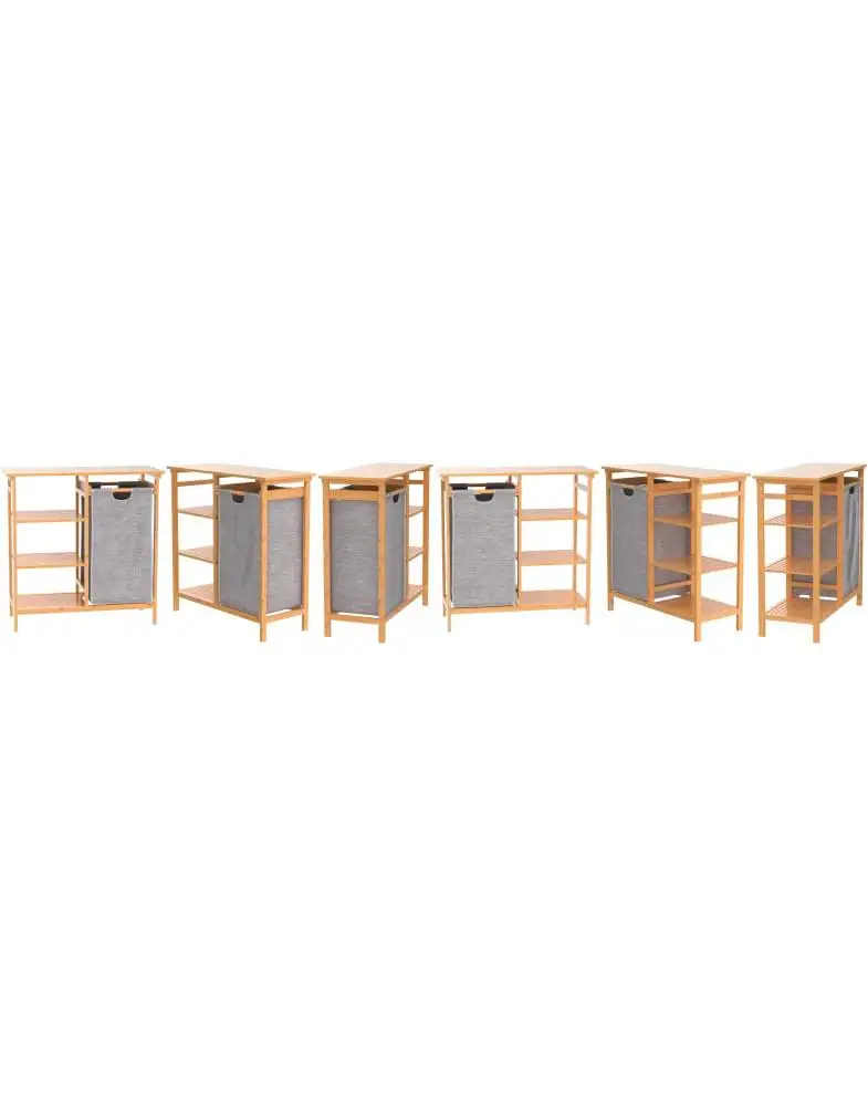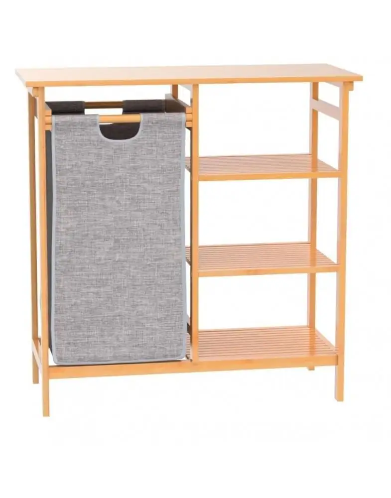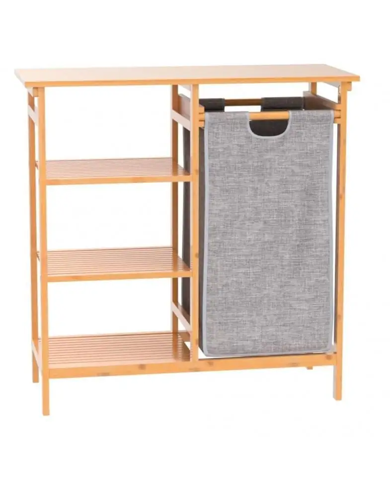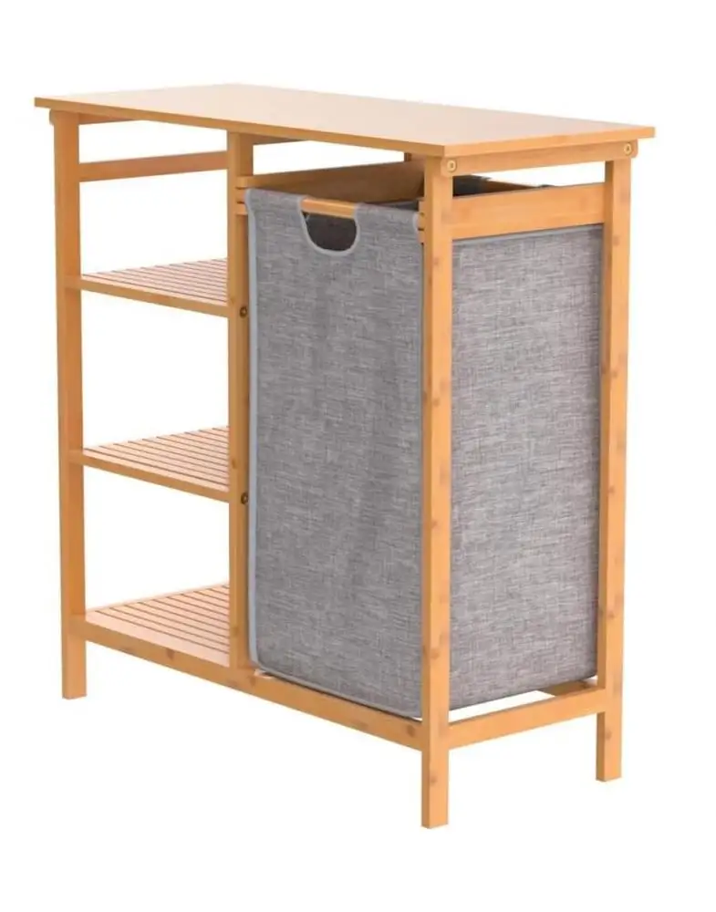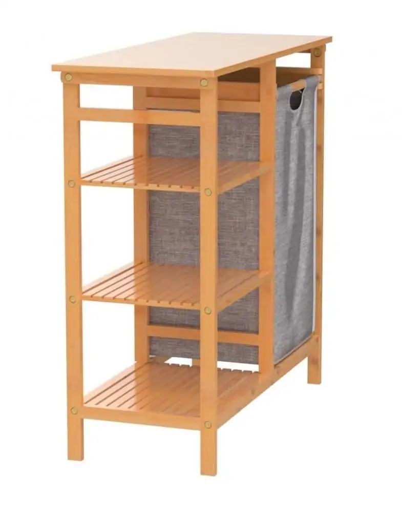 סל נוח ופונקציונלי מיועד לאיסוף כביסה מלוכלכת ומציע גם שלושה מדפים לאחסון נוח של פריטים שונים.