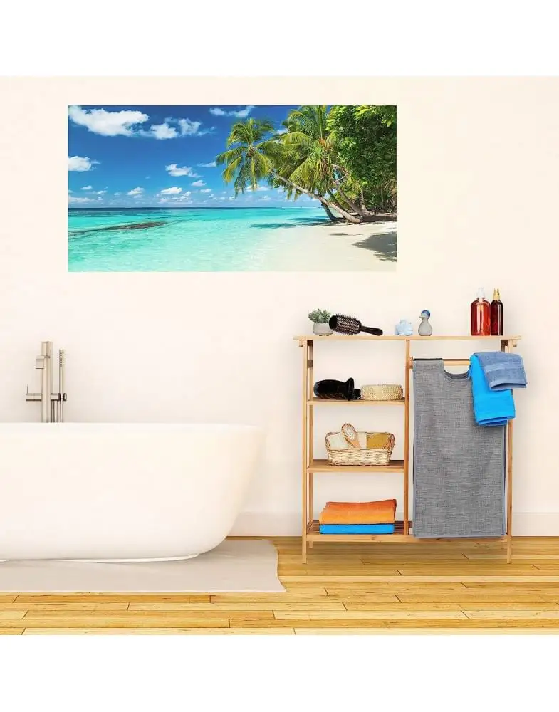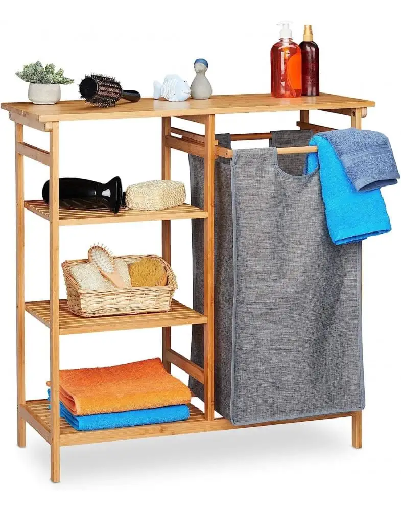 סל כביסה מצויד בשלושה מדפים המספקים מקום רב להנחת מגבות, מוצרי קוסמטיקה, אביזרי אמבטיה ופריטים נחוצים נוספים.