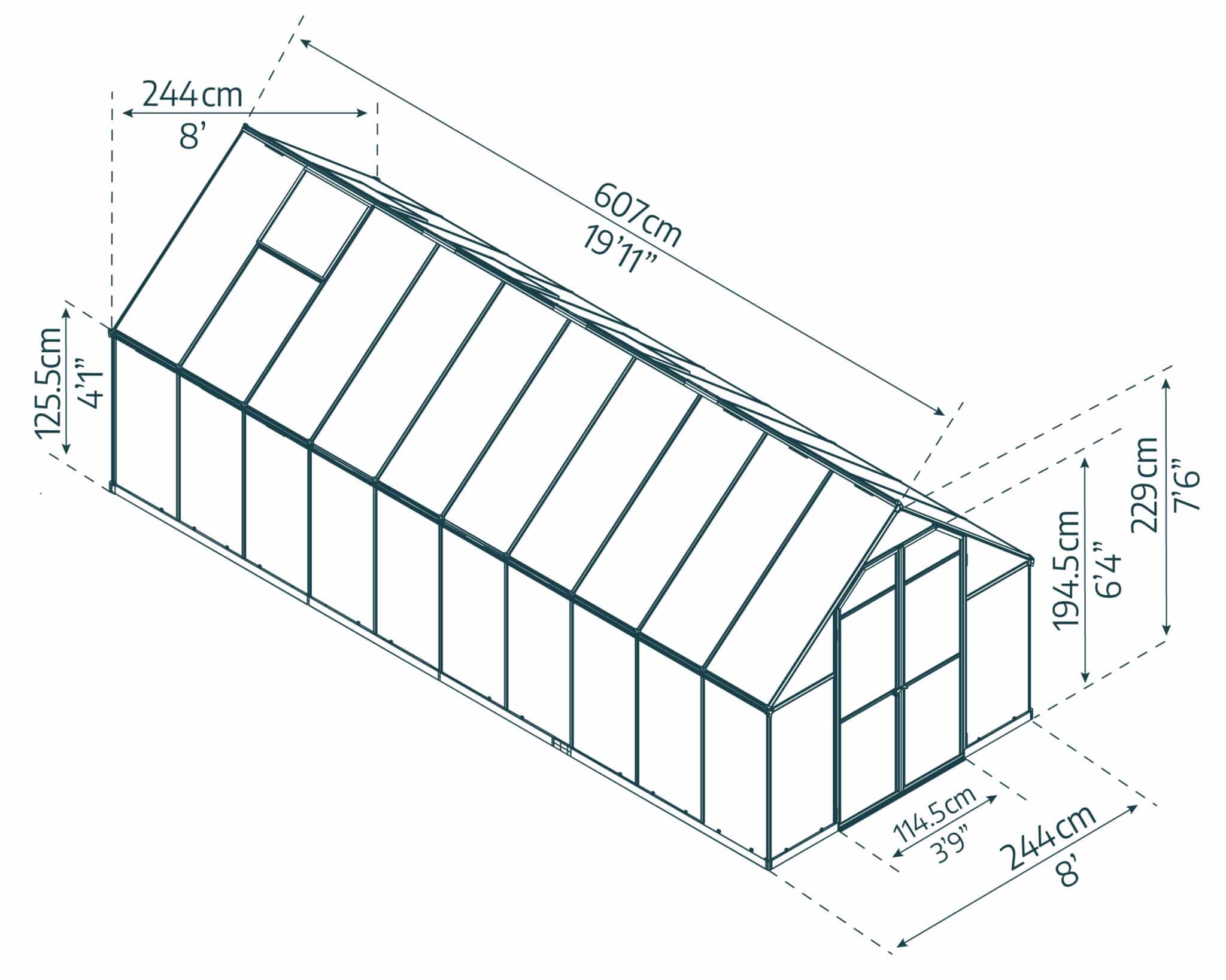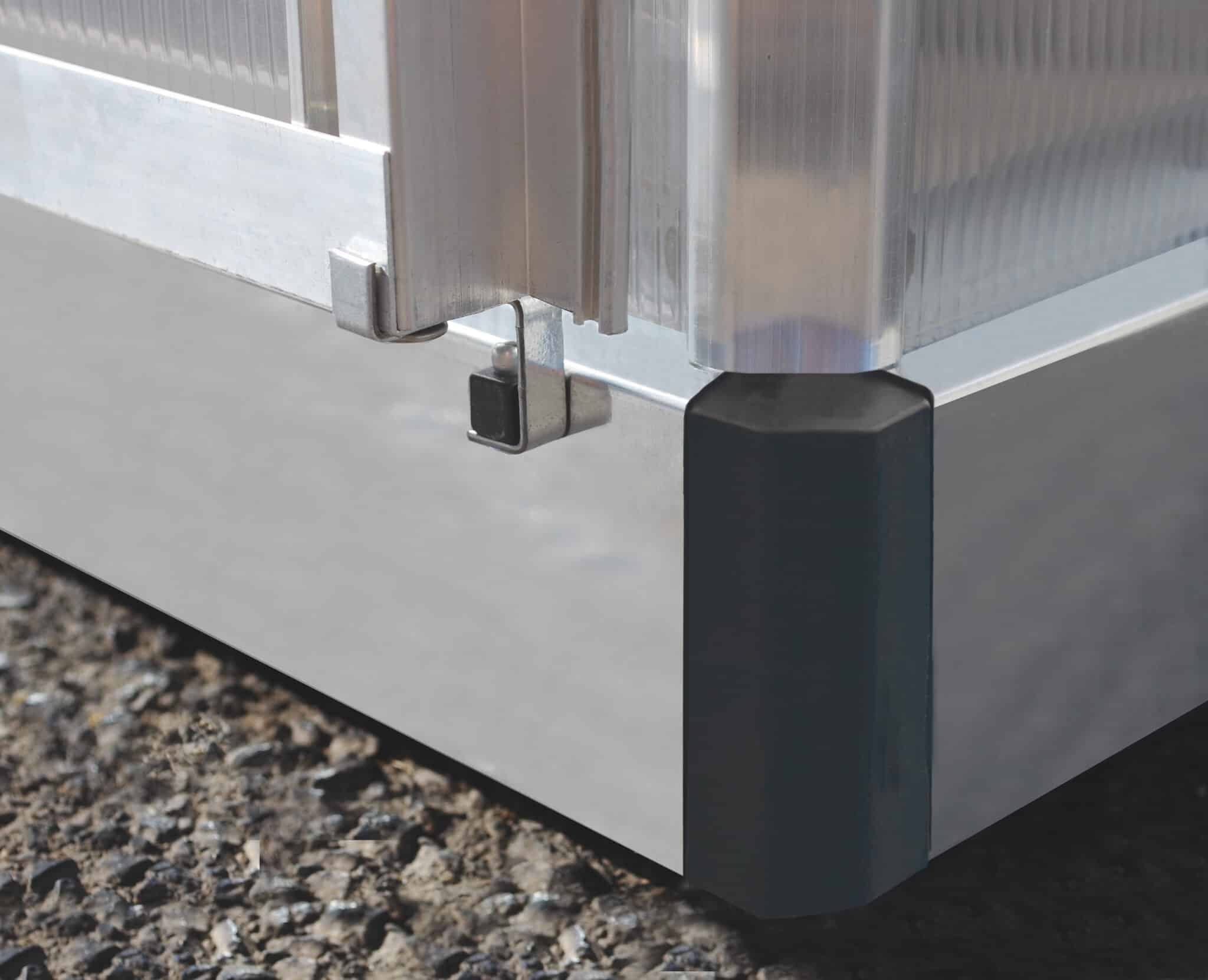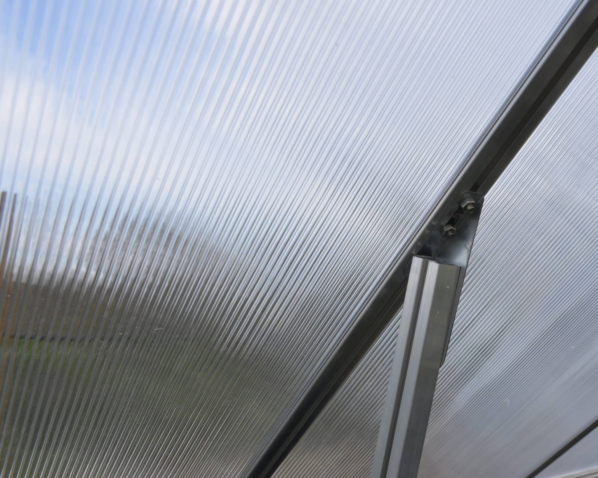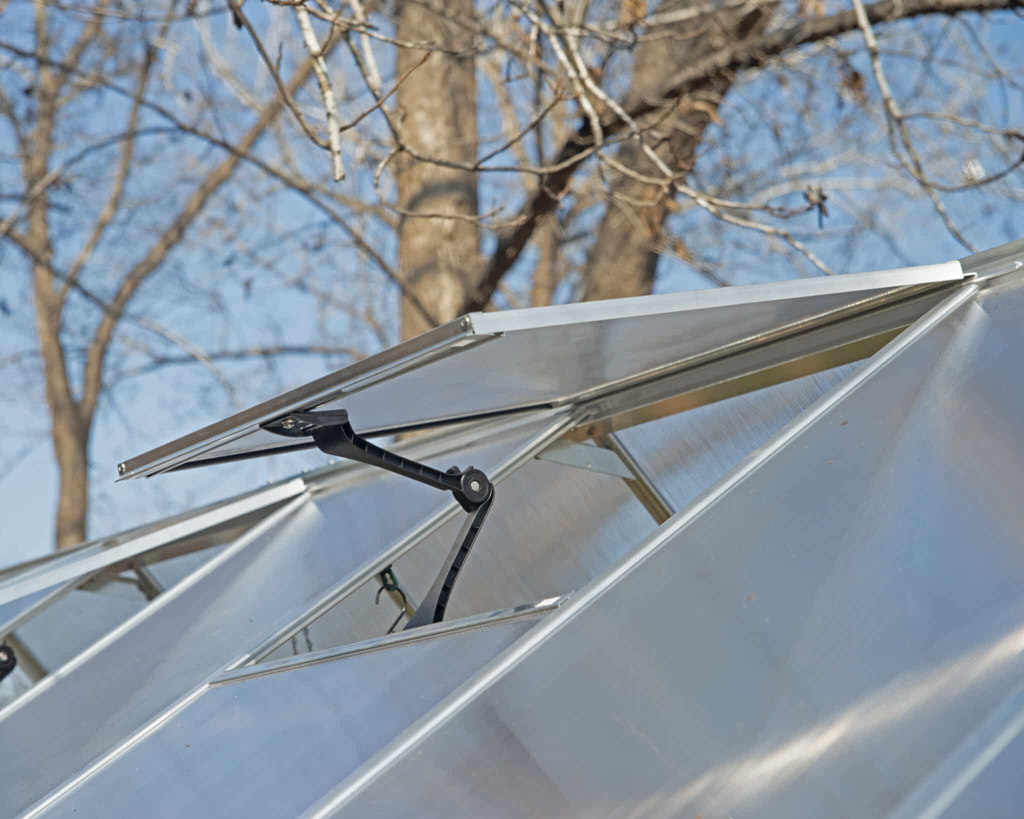החממה בנויה משלד אלומיניום וזיגוג מפוליקרבונט כפול דופן חוסם קרינה אולטרה סגולה מזיקה; שניהם עמידים בפגעי מזג האויר לשנים רבות וללא תחזוקה.