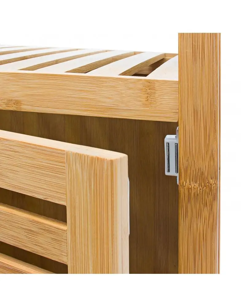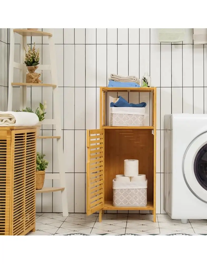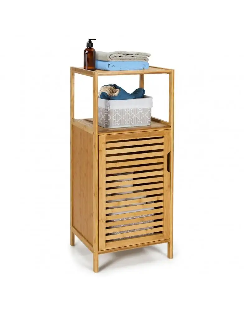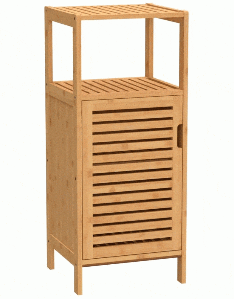 כולל מדפים עליונים ותא עם דלת בו ניתן לאחסן מוצרי טיפוח, מגבות או כימיקלים ביתיים.