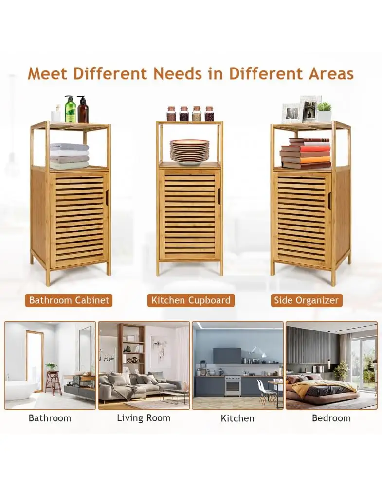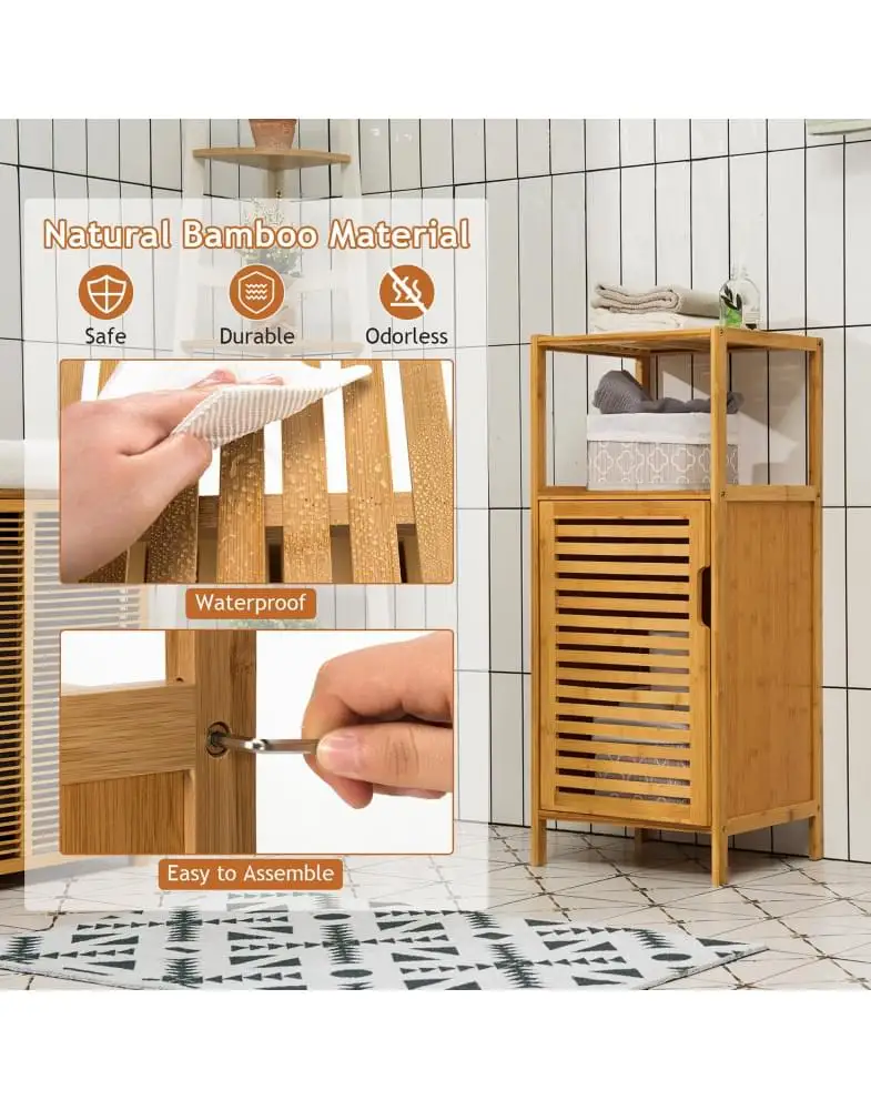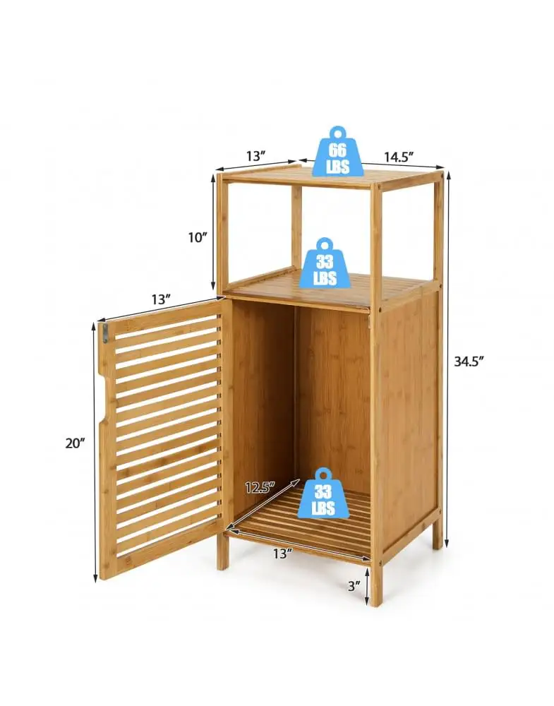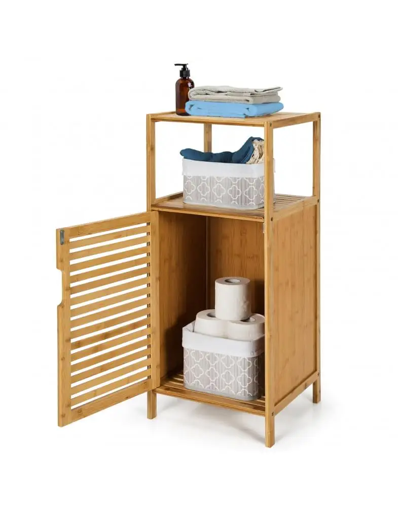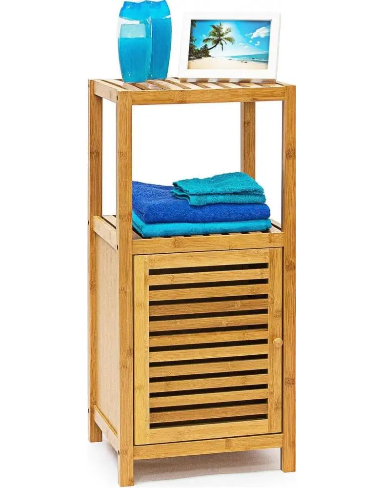 כולל מדפים עליונים ותא עם דלת בו ניתן לאחסן מוצרי טיפוח, מגבות או כימיקלים ביתיים.