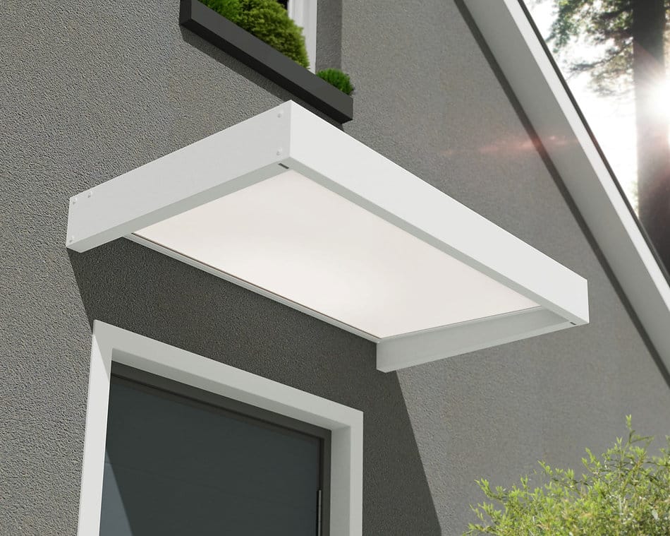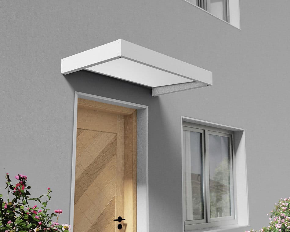 Sophia גגון בעיצוב מודרני בעל קו נקי, מסגרת אלומיניום בצבע לבן אלגנטי ולוח לבן אופל המשדרג את המראה החיצוני של הבית. הגגון המודרני מגן על הדלת ופתח הכניסה שלך מפני קרני UV מזיקות ומשמש כסוכך מרפסת איכותי במיוחד, קל להתקנה, בנוי לעמידות ארוכת שנים ואינו דורש תחזוקה שוטפת.