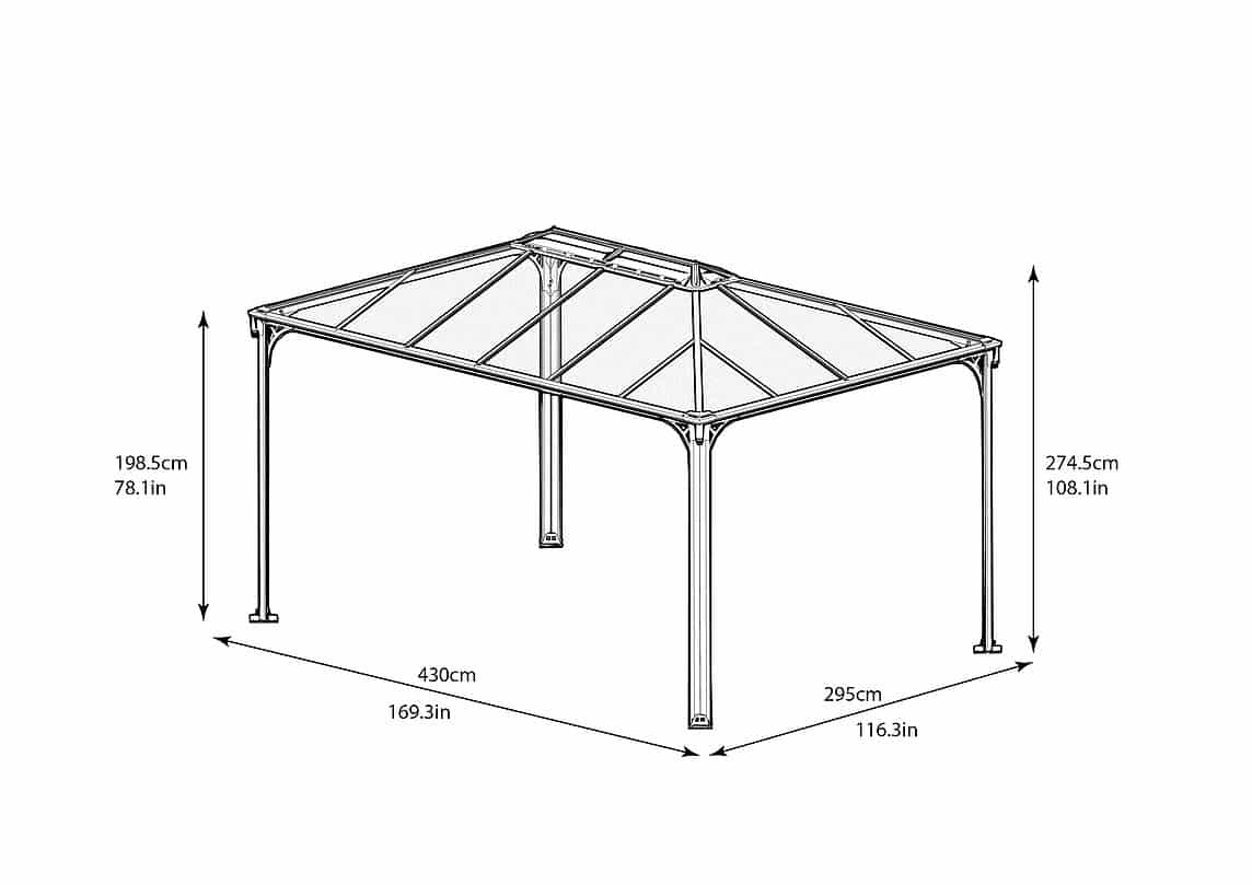 הגזיבו עשוי אלומיניום ופוליקרבונט קשיח ומתאים למגוון שימושים בכל עונות השנה ללא צורך בתחזוקה.