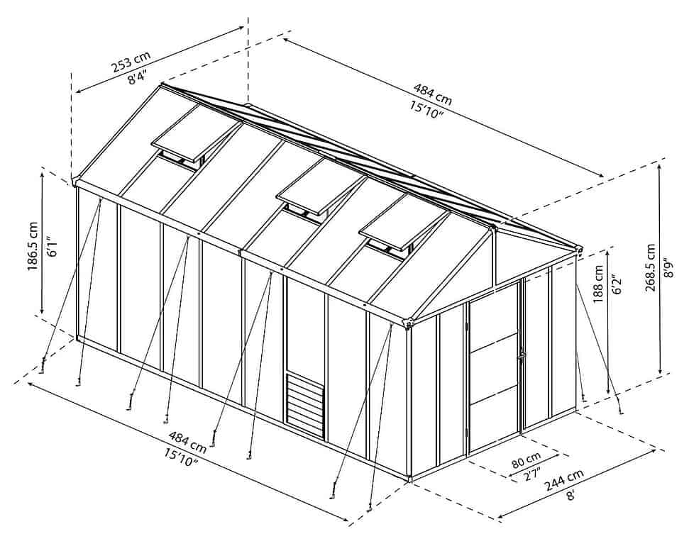 חממה ביתית ברמה גבוהה, מאובזרת באביזרים משלימים (פותח חלון אוטומט, חלון רפפה, קיט מתלים)מאפשרת לגדל בנוחות בכל עונה עם חלל מרווח וגבוה במיוחד המאפשר גם לאחסן כלי עבודה.