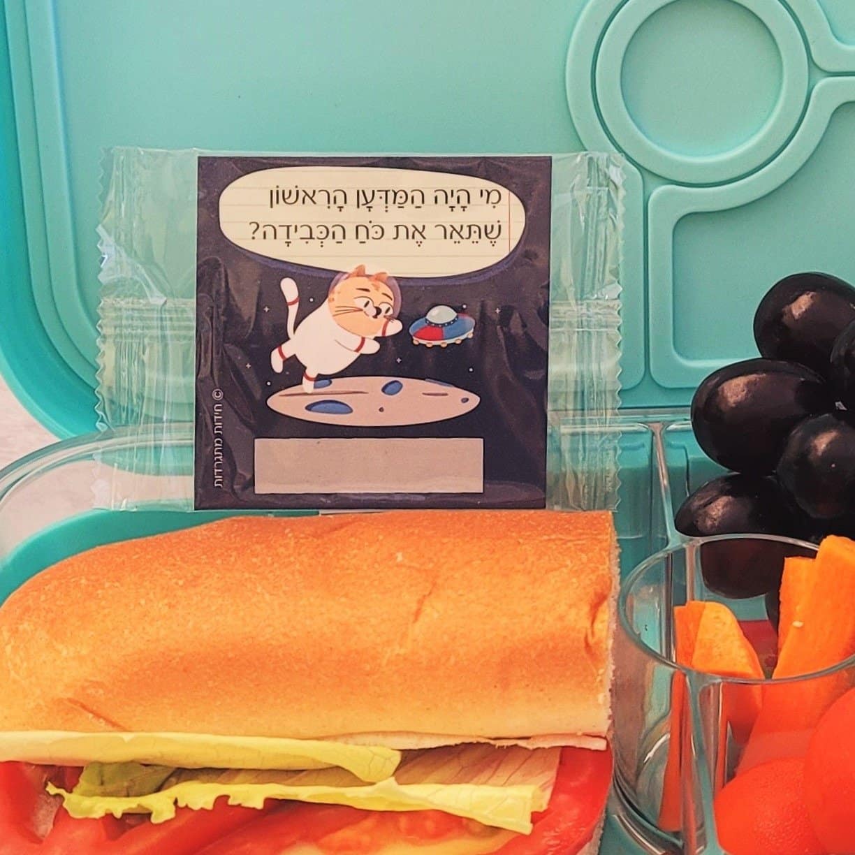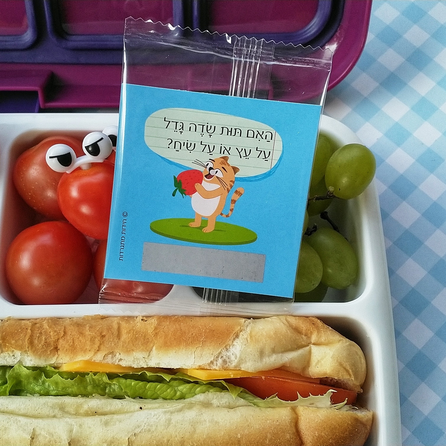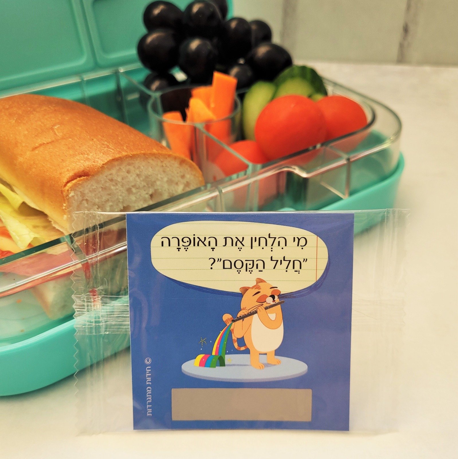 אמא, אבא, במקום להיפרד מהם בבוקר עם צביטה קטנה בלב, דמיינו שבזמן ארוחת העשר, כשכל הילדים לועסים בדממה, לילדים שלכם יש ניצוץ בעיניים כי שמת להם כרטיס של "חידות מתגרדות" בקופסה.