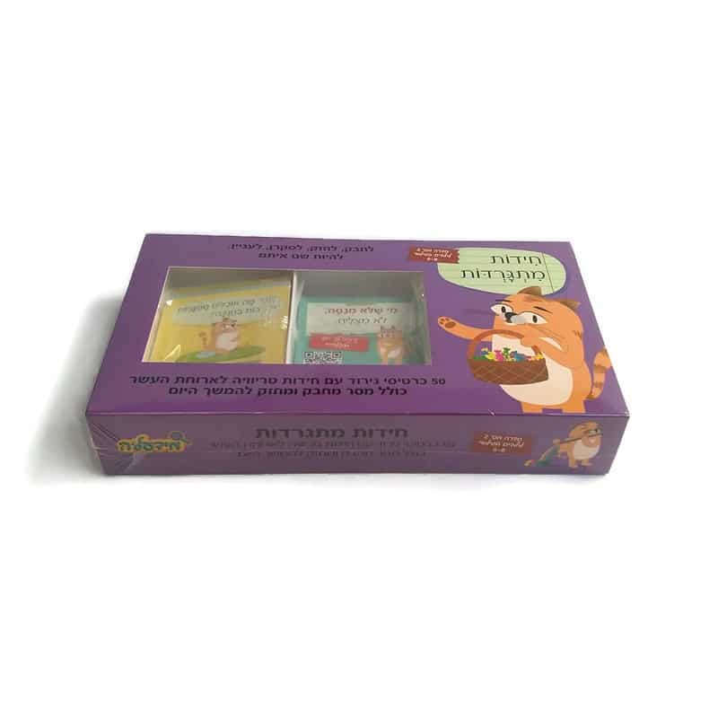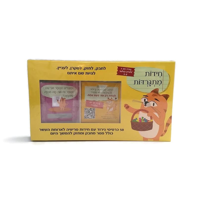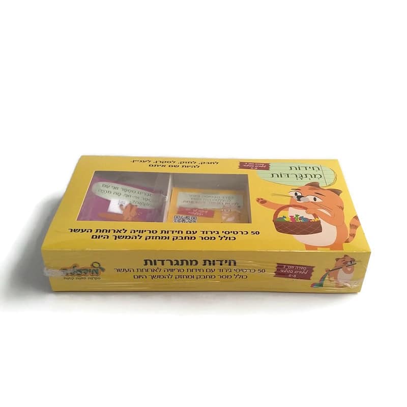 סבתא וסבא, מחפשים מתנה לחג שהילדים לא יזרקו הצידה אחרי דקה? עם כרטיסי חידות מתגרדות הם ייהנו במשך חודשיים לפחות! כרטיסי "חידות מתגרדות" יהפכו את הנכדים שלך למוקד העניין בכיתה.