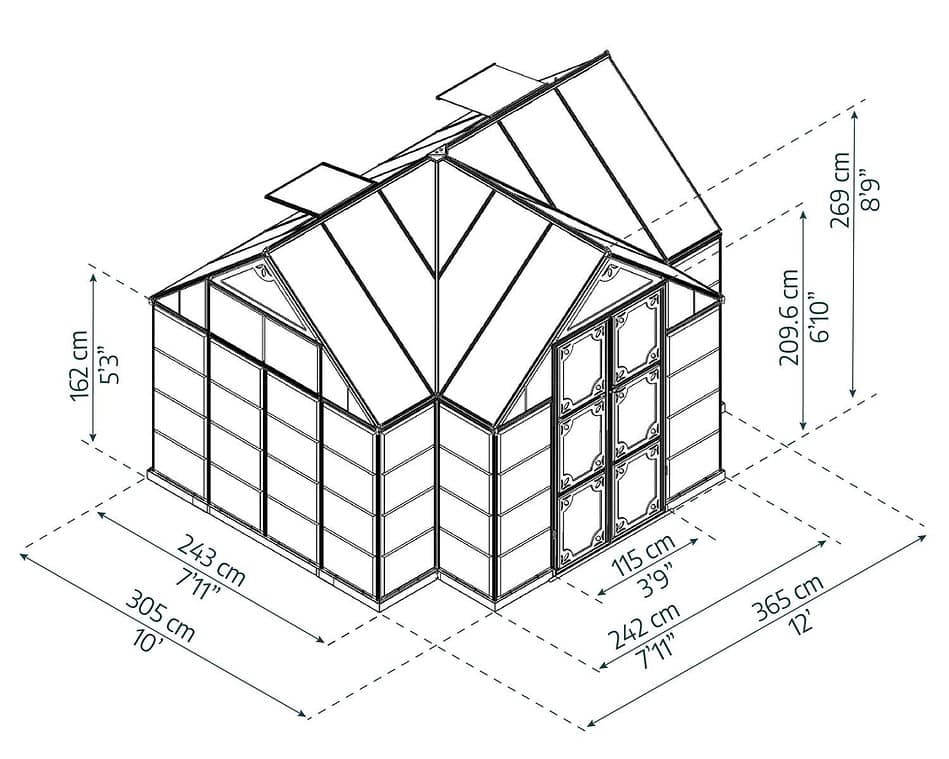 חממה ביתית 3.6×3 VICTORY ORANGERY בצבע אפור