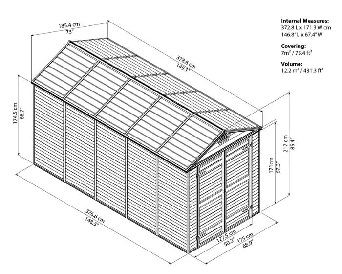 מחסן גינה סקיילייט 1.9X3.8 מטר (12X6 פיט)