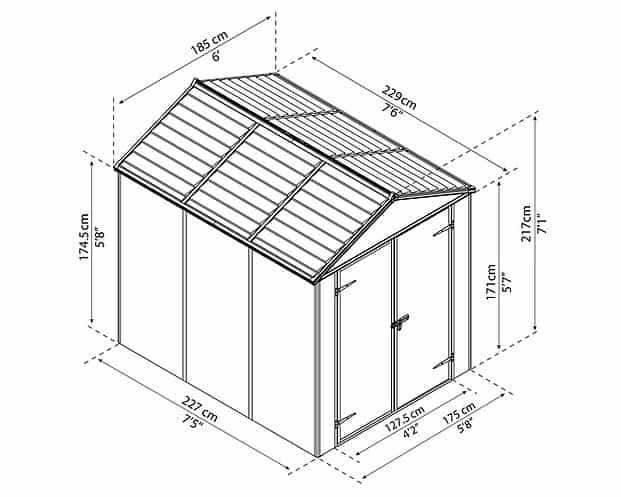 מחסן גינה רוביקון אפור 1.9X2.3 מטר (6X8 פיט)
