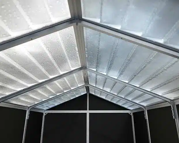 • מחסן אולטרה חזק בעל שלדת אלומיניום אל-חלד וקירות פוליקרבונט כפול דופן בלתי שביר, השומרים על צורתם וצבעם לאורך השנים ומוגני UV.