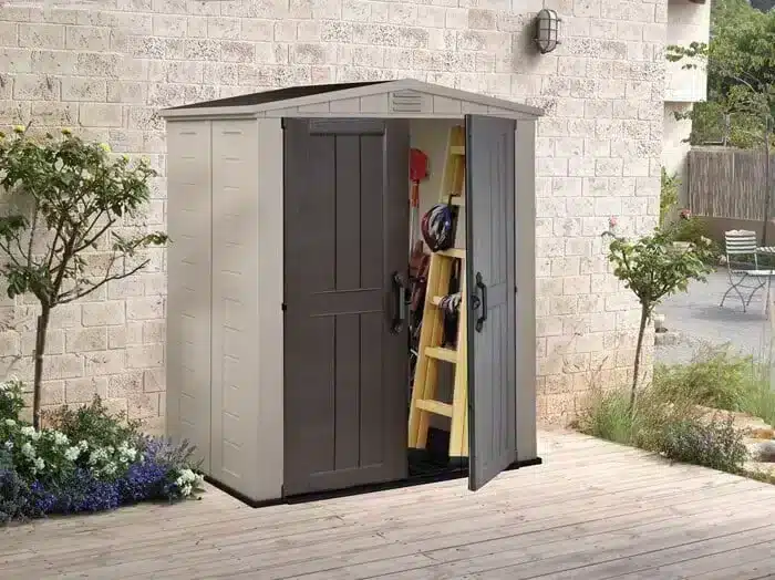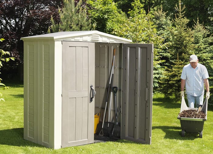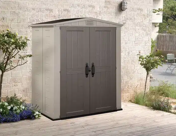 מחסן כתר פקטור 6X3 – עשוי מפלסטיק עמיד ומחוזק בפלדה המספק הגנה מפני פגעי מזג האוויר