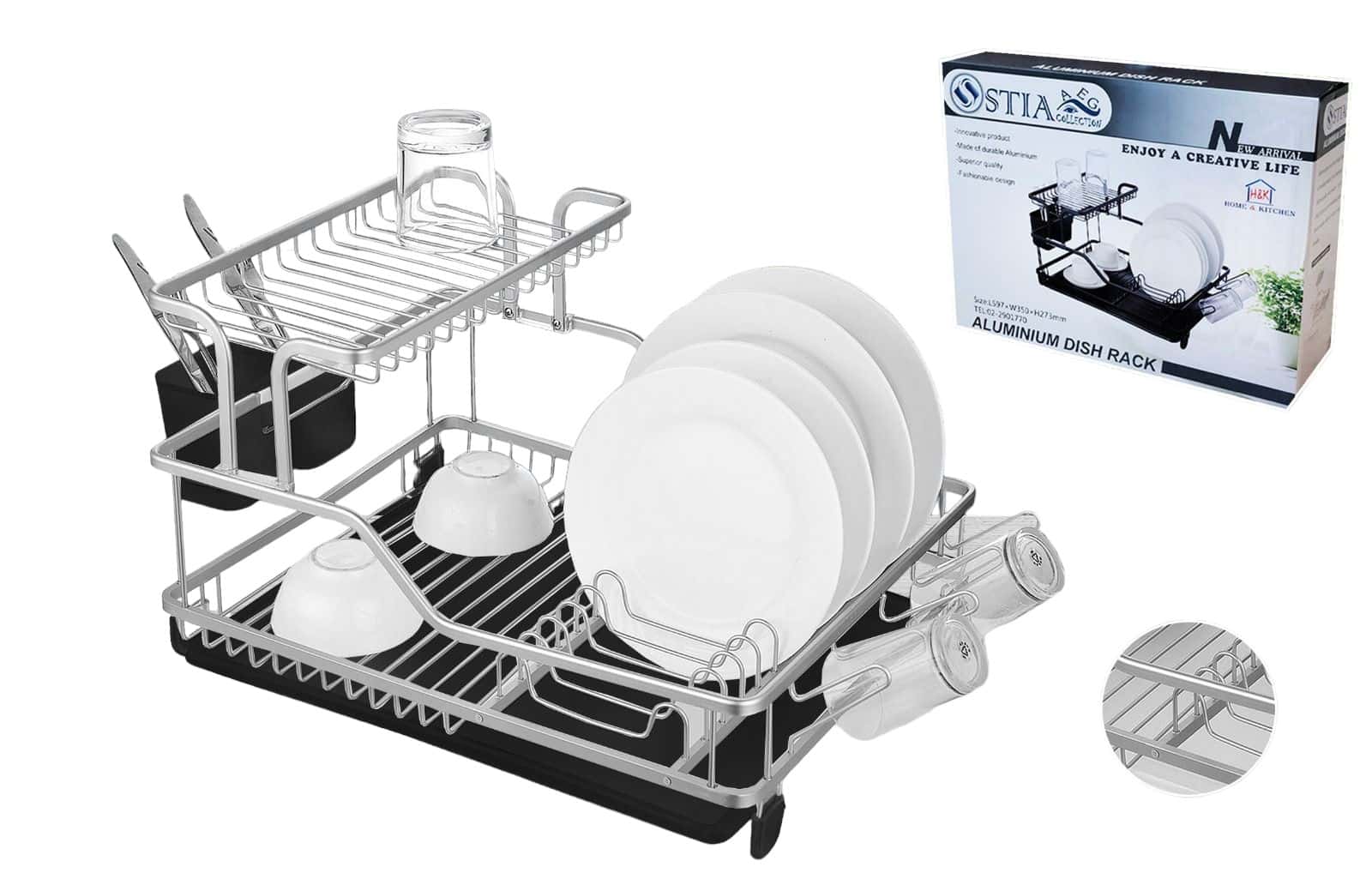 מייבש כלים אלומיניום דו קומתי איכותי במיוחד בגוון כסף