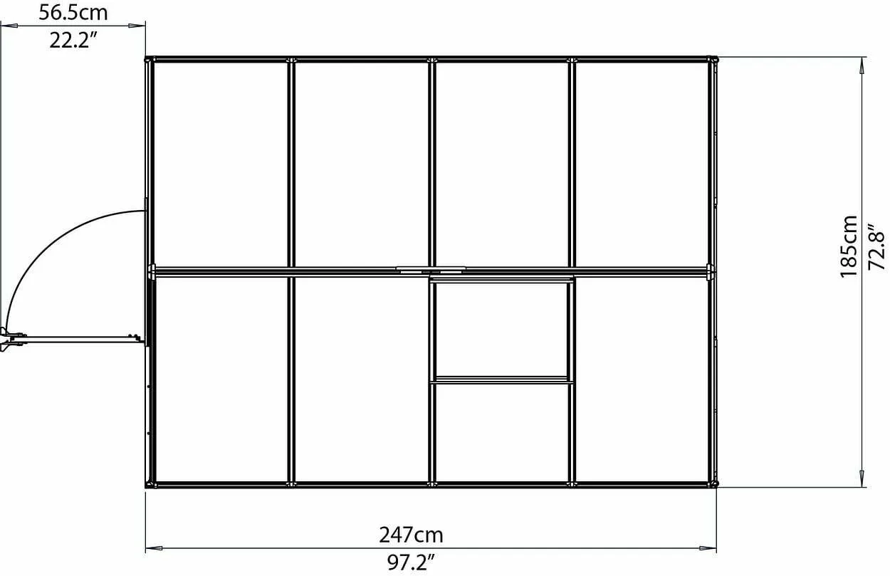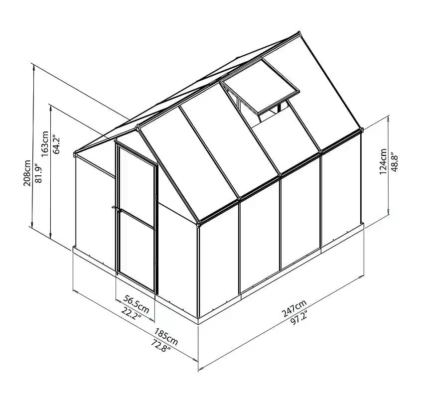 החממה בנויה משלד אלומיניום וזיגוג מפוליקרבונט כפול דופן חוסם קרינה אולטרה סגולה מזיקה; שניהם עמידים בפגעי מזג האויר לשנים רבות וללא תחזוקה.