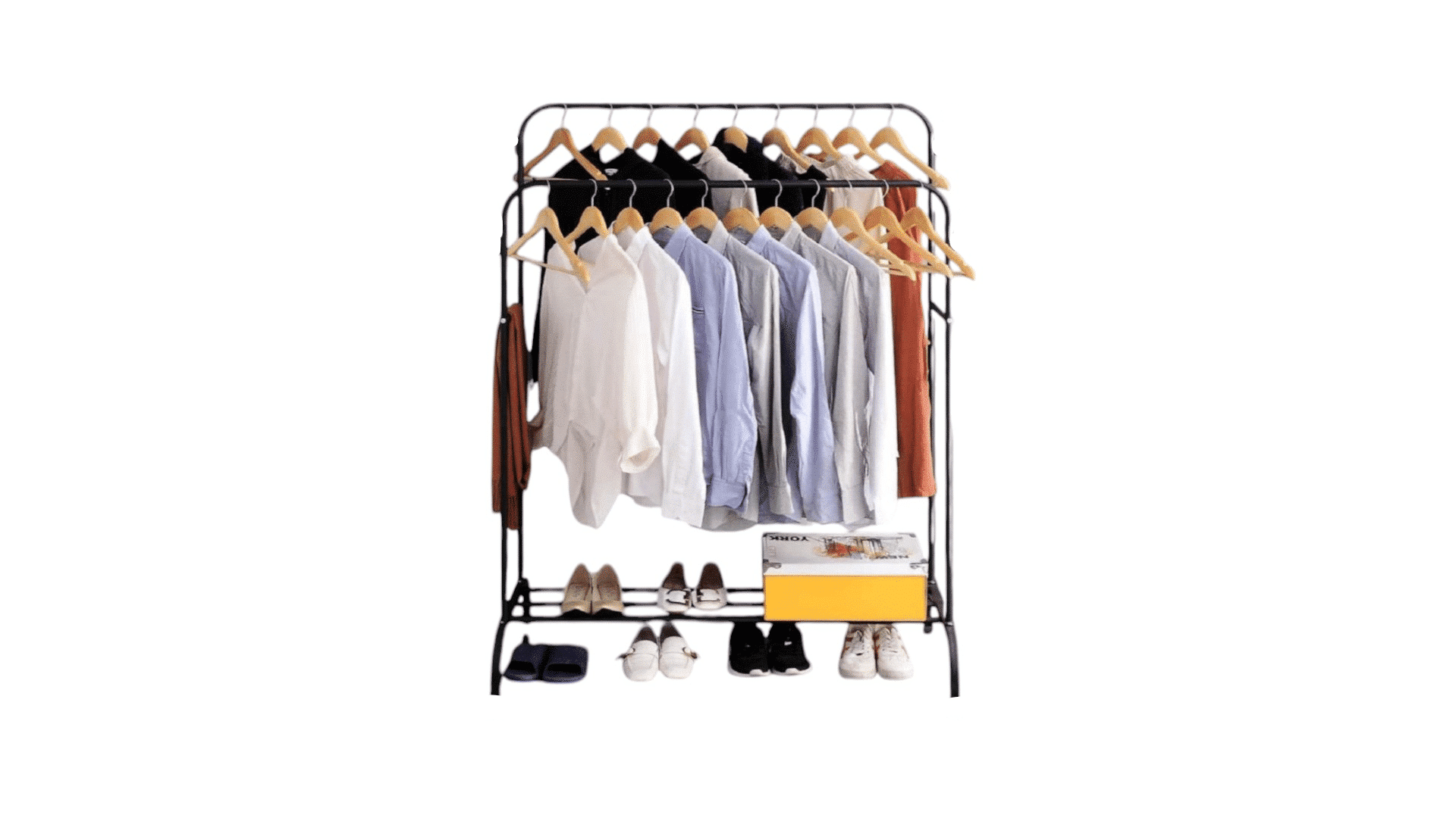 סדר ופונקציונליות נפגשים: מתלה בגדים כפול נייד כולל מדף תחתון!