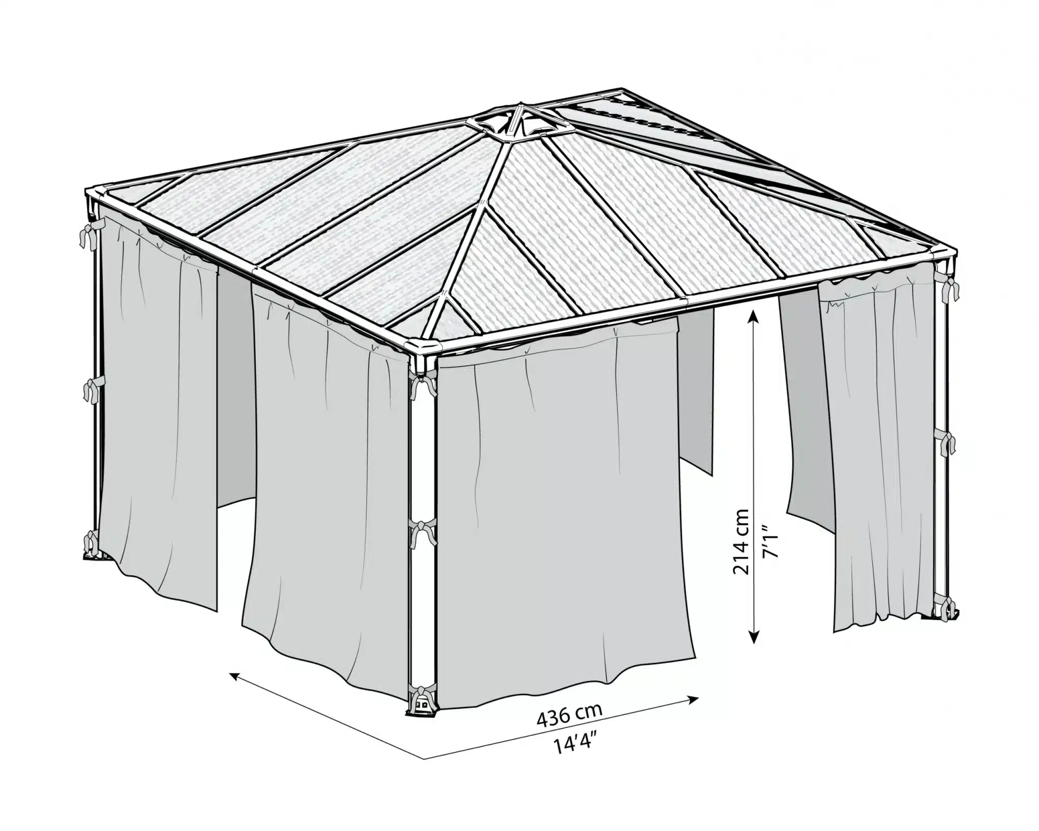 סט וילונות תואם לגזיבו מדגם PALERMO 4.3×4.3 מבית פלרם – Canopia