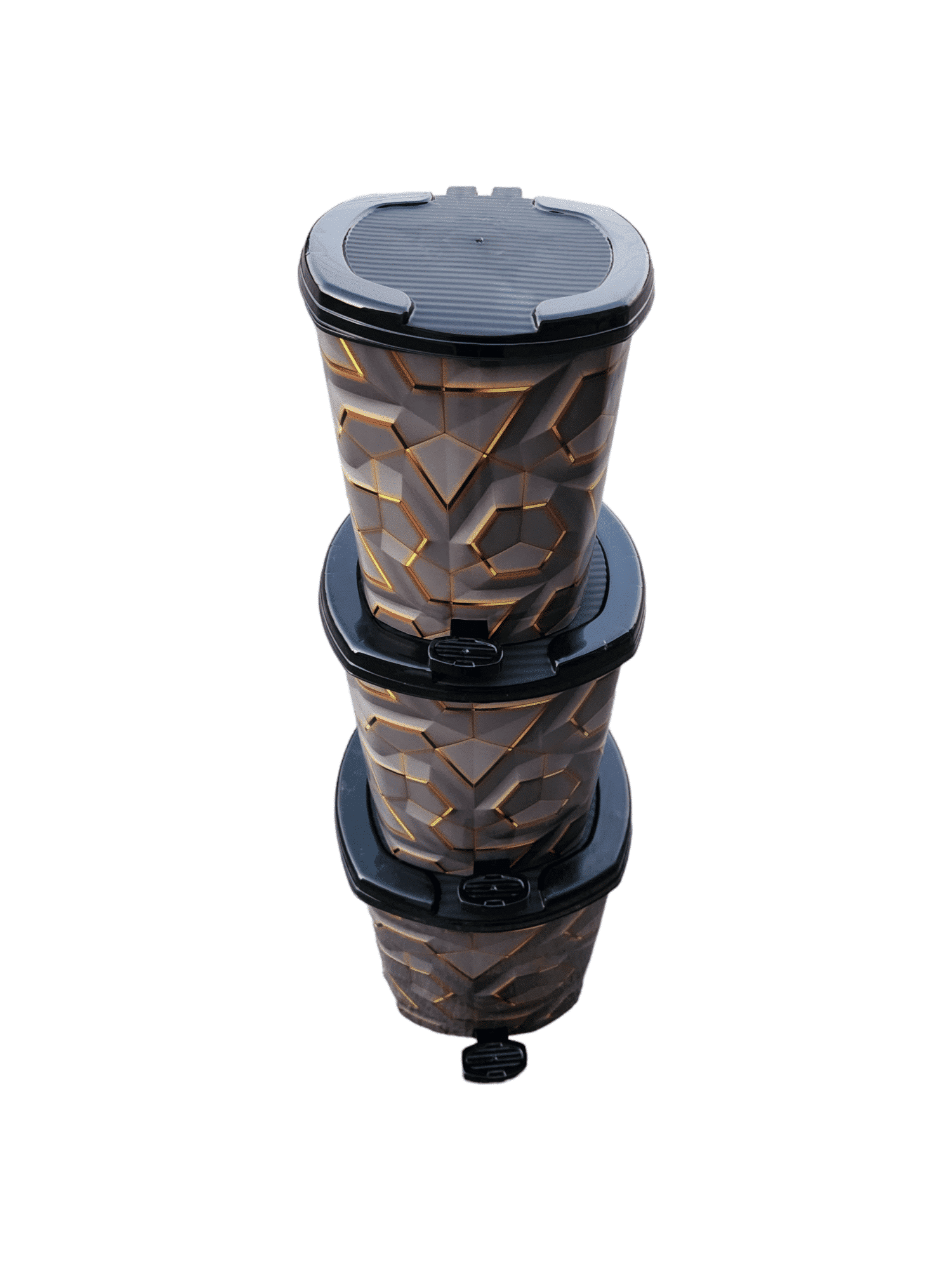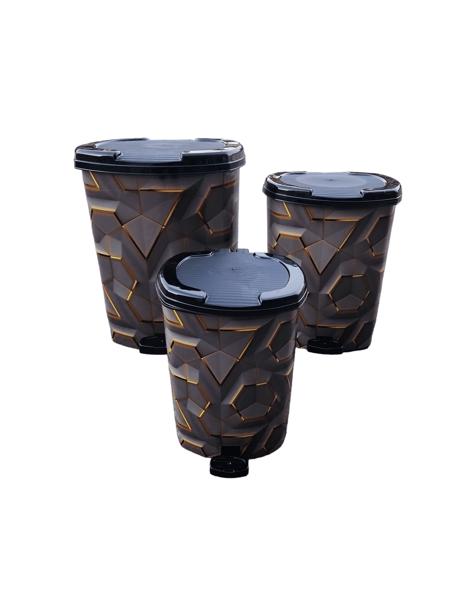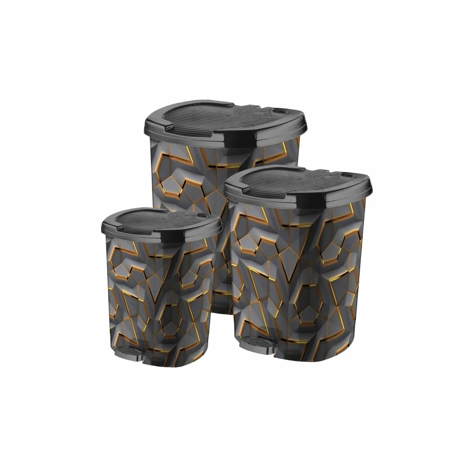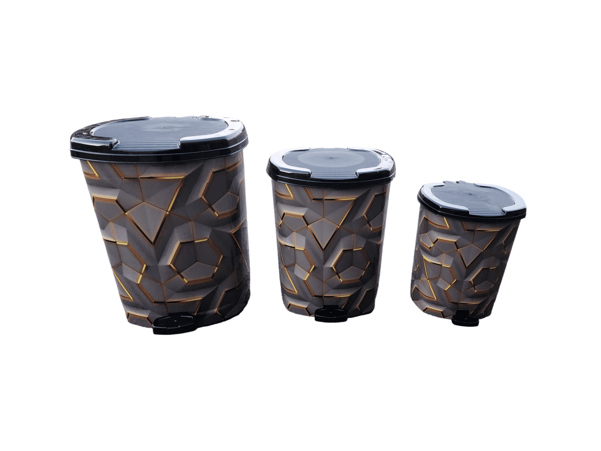סט שלושה פחי אשפה פדל (דוושה) דגם יהלום – פחי פלסטיק איכותיים למגוון שימושים