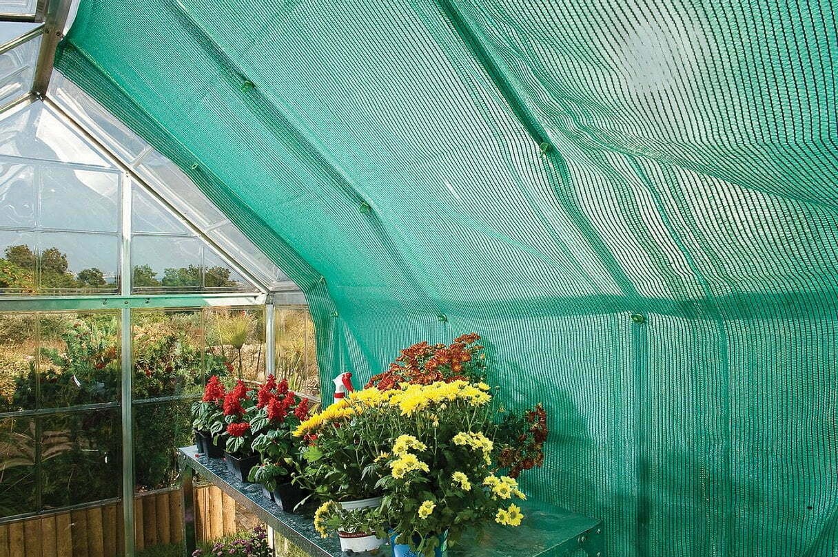 • רשת הצללה לחממה עשויה פוליאסטר למיתון עומס החום בימים חמים ולצורך הגנה מפני חרקים.