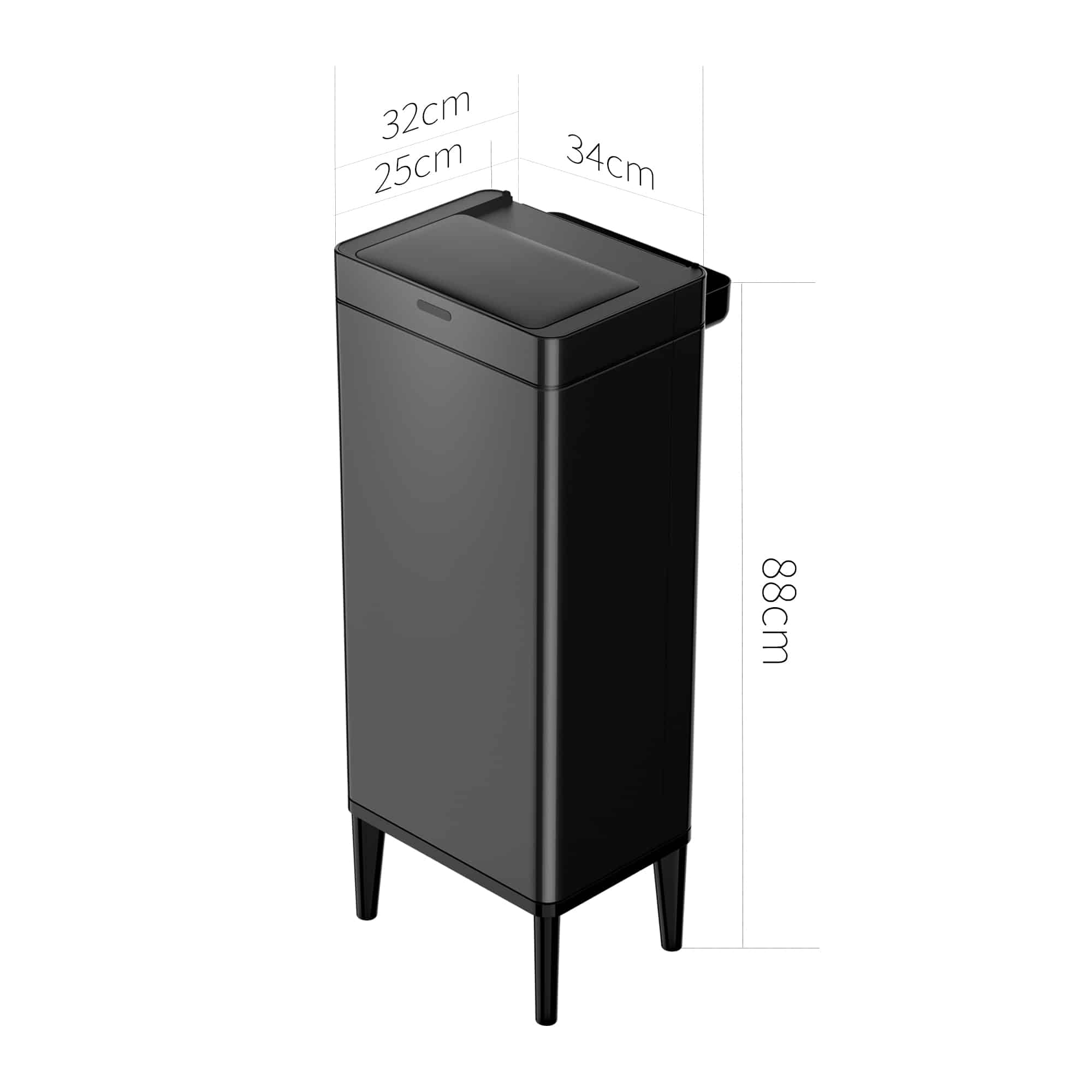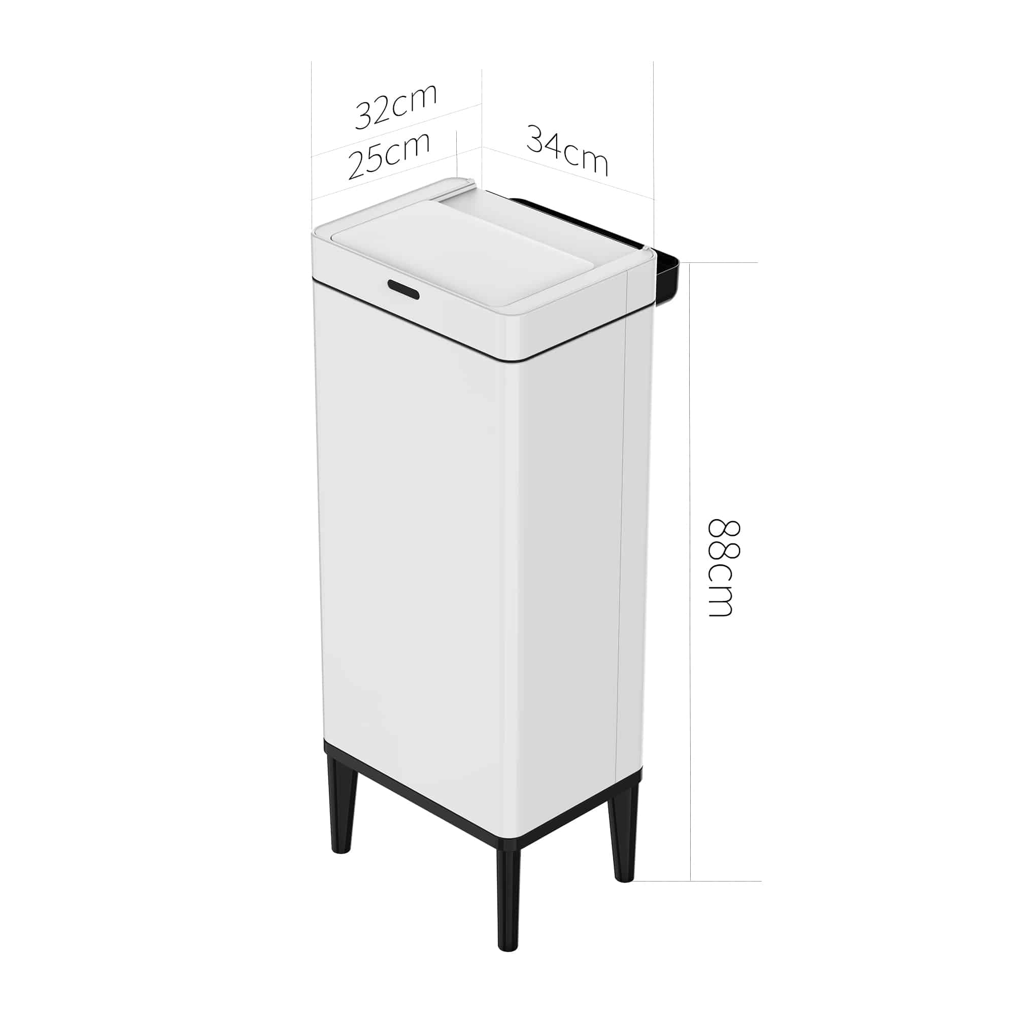 מנגנון פתיחה חכם עם Slide: המכסה נפתח אוטומטית בהחלקה חלקה אחורה כאשר מעבירים את היד בגובה של כ-20 ס"מ מעל הפח – פתרון אידאלי גם למקומות עם מגבלות גובה כמו מתחת לשיש, בארון או מתחת למדף.