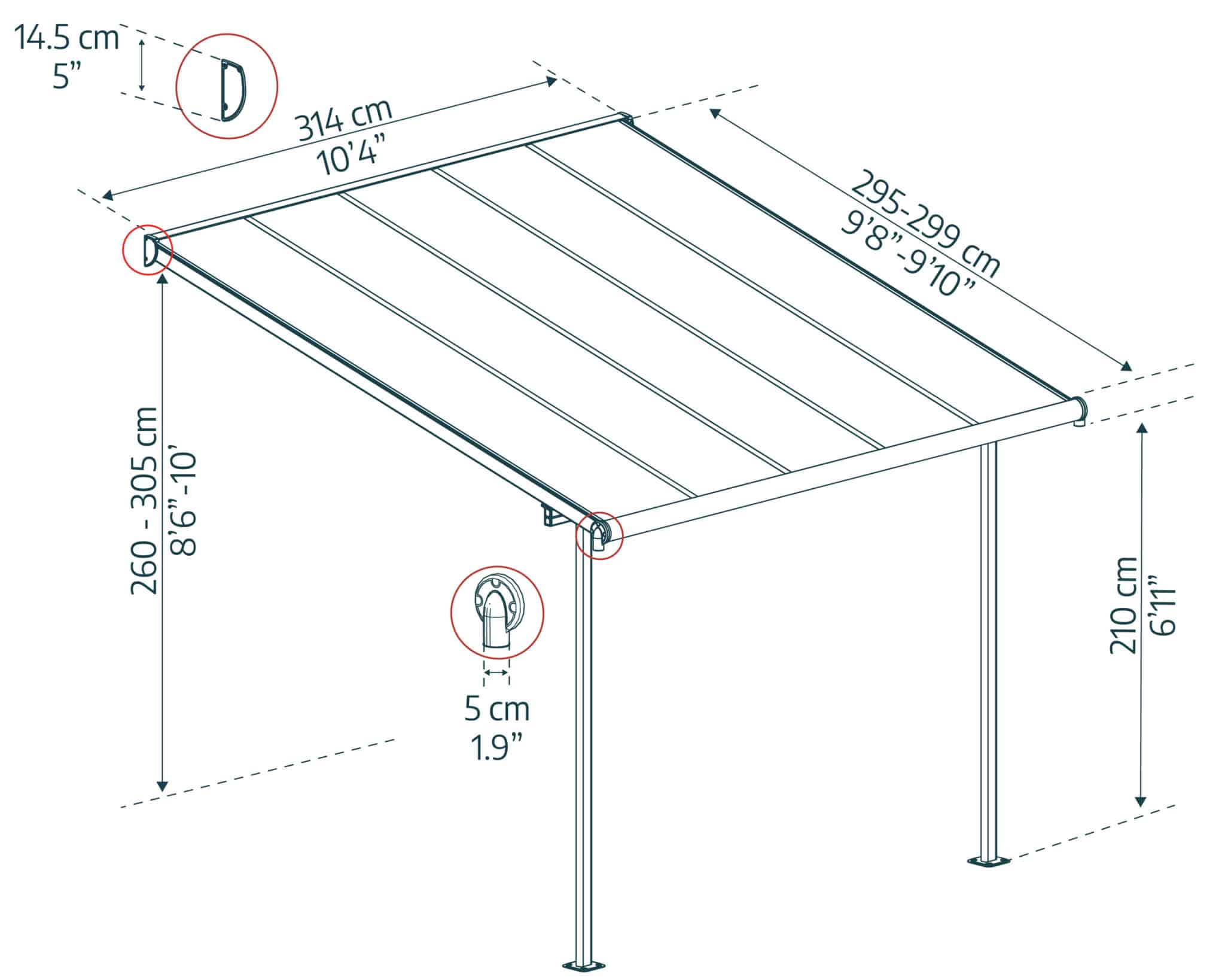 • מערכת קירוי פוליקרבונט איכותי ללא ברגים או נזילות, מוגנת UV