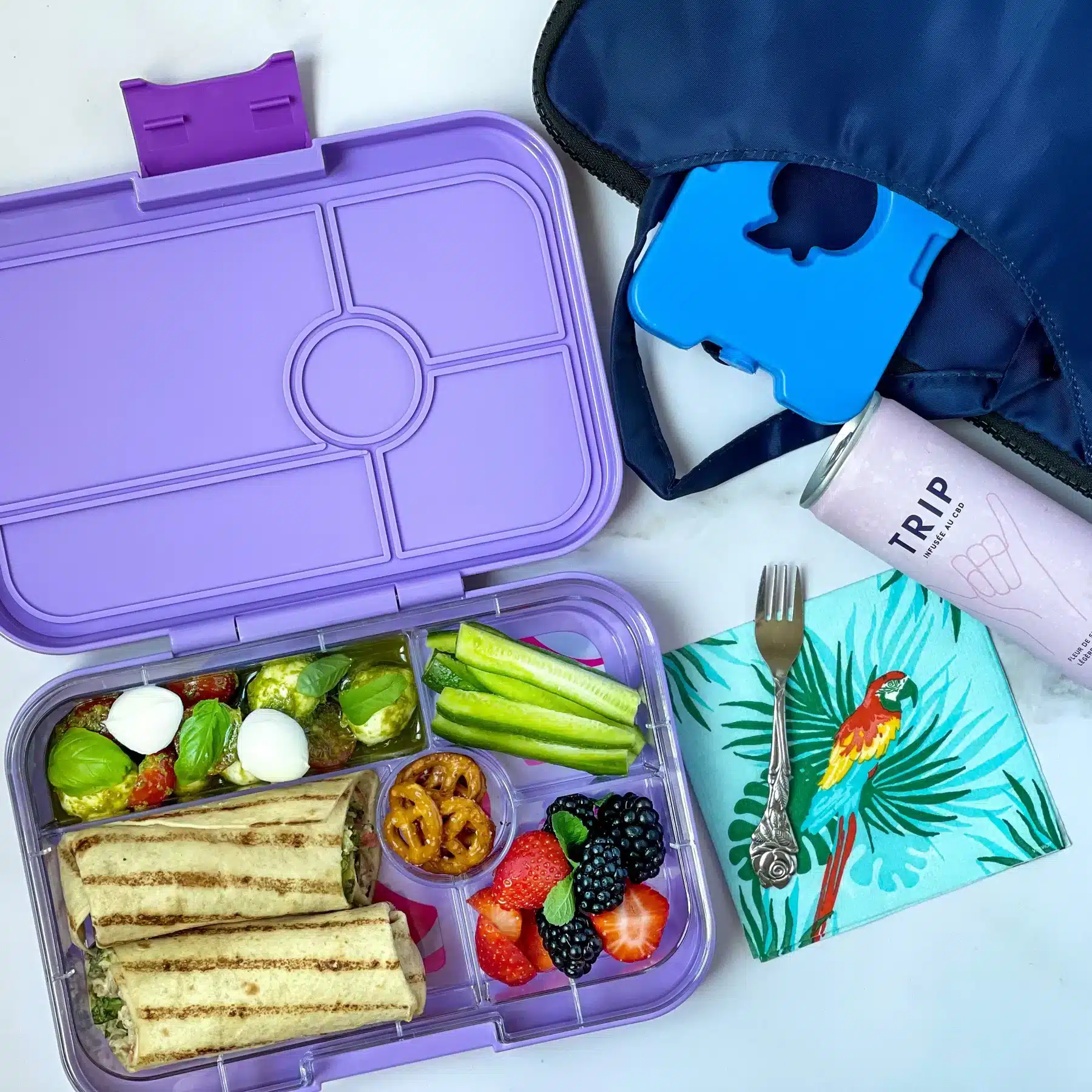 נפח הקופסא 4.2 כוסות: 2 תאים גדולים, 2 תוספות ותא למטבל/חטיף.