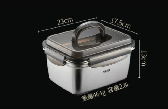 קופסת אוכל מנירוסטה עם אטם בנפח של 2800 סמ”ק.