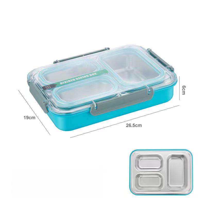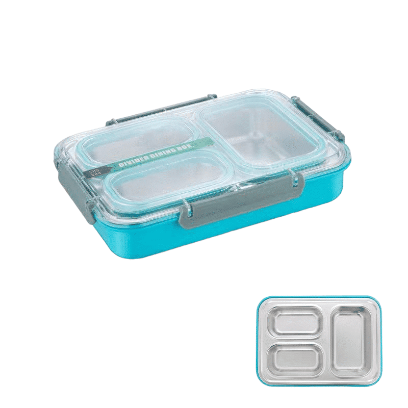 קופסת נירוסטה עם אטם מחולקת לשלושה תאים