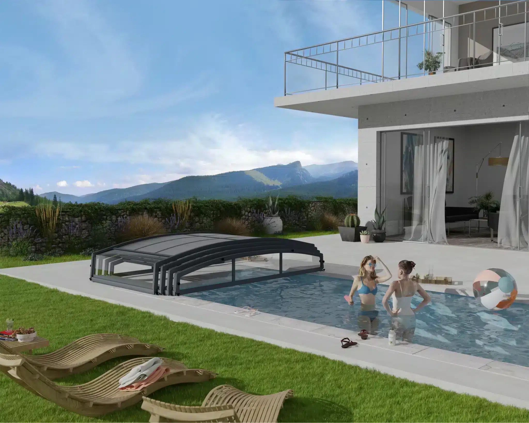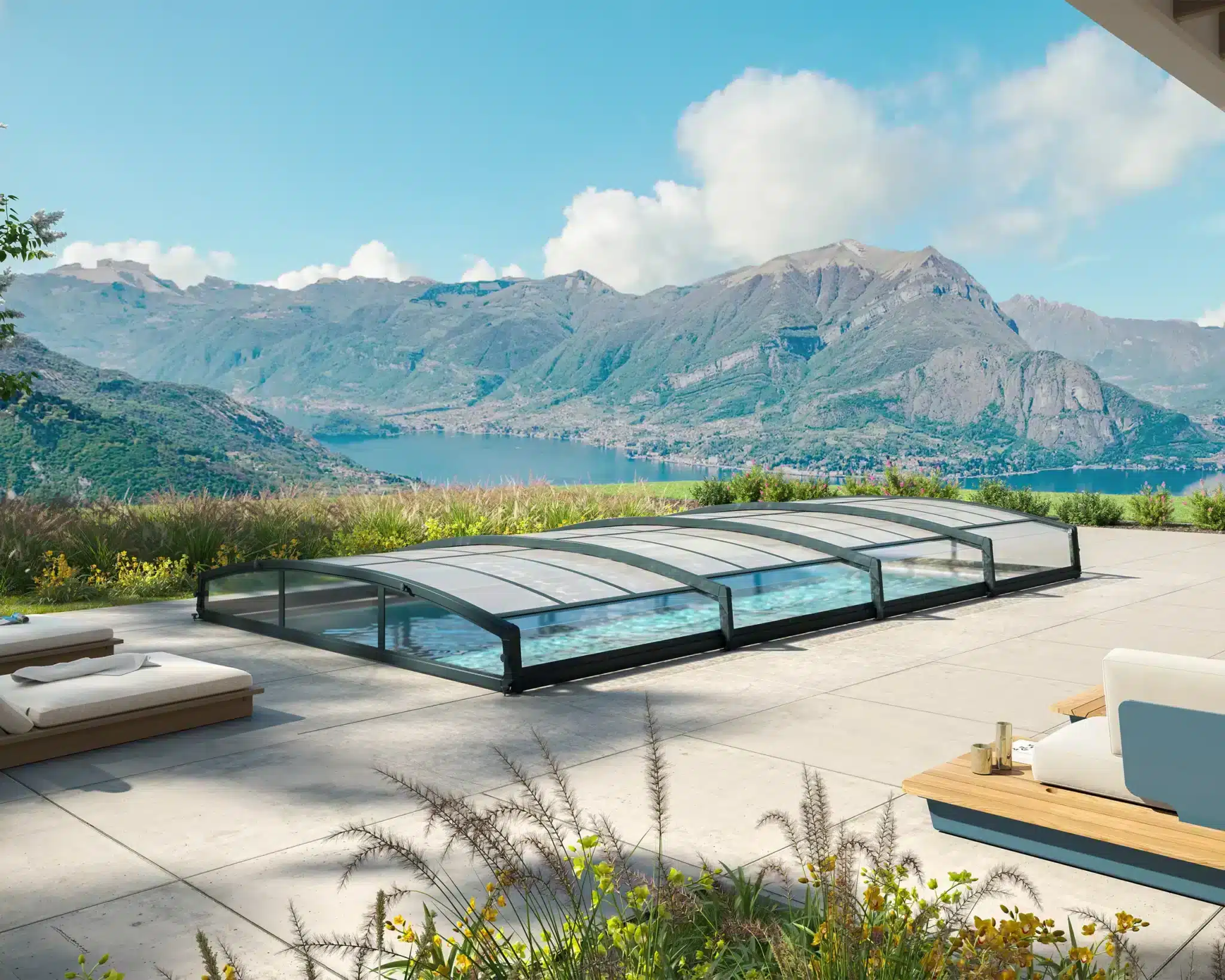 קירוי בריכה טלסקופי קשיח Majorca
