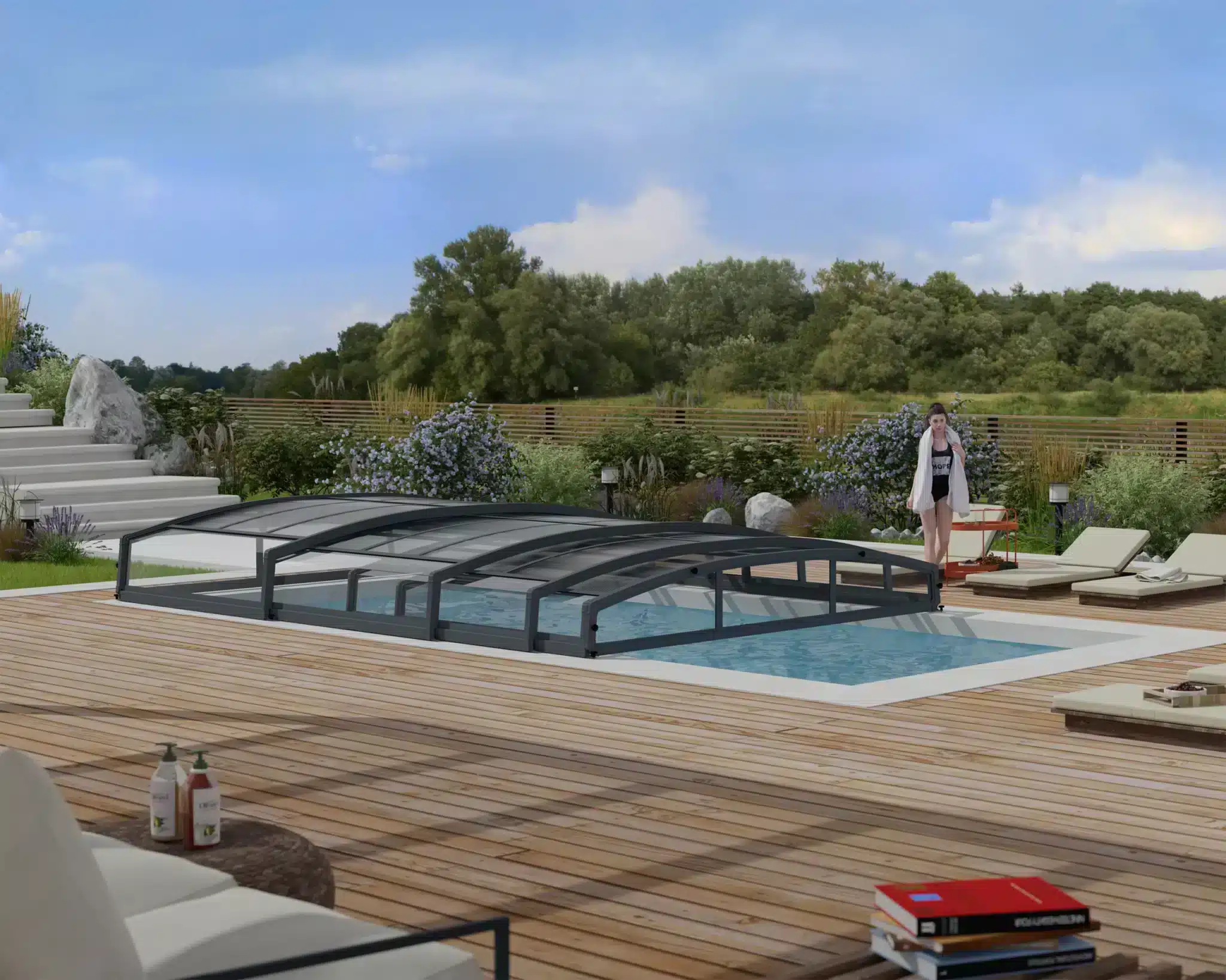 מיורקה הינו קירוי קשיח לבריכה, המיועד להרכבה עצמית. מאפשר הארכת ימי הקיץ והנאה בשחייה במים בטמפרטורה חמימה. בעלי בריכת שחיה פרטית יהפכו את סביבת הבריכה לבטוחה, נקייה ומאובטחת לילדים. קירוי הבריכה בעל עיצוב אלגנטי הנע על גלגלים. ניתן לסגירה ופתיחה קלה, ומשתלב בגינה שלך. קירוי לבריכה עשוי מחומרים איכותיים וקשיחים המאפשרים גישה נוחה בכל עת שתחפצו, כמו גם שחיה תחתיו בזמני מזג אויר קרירים.