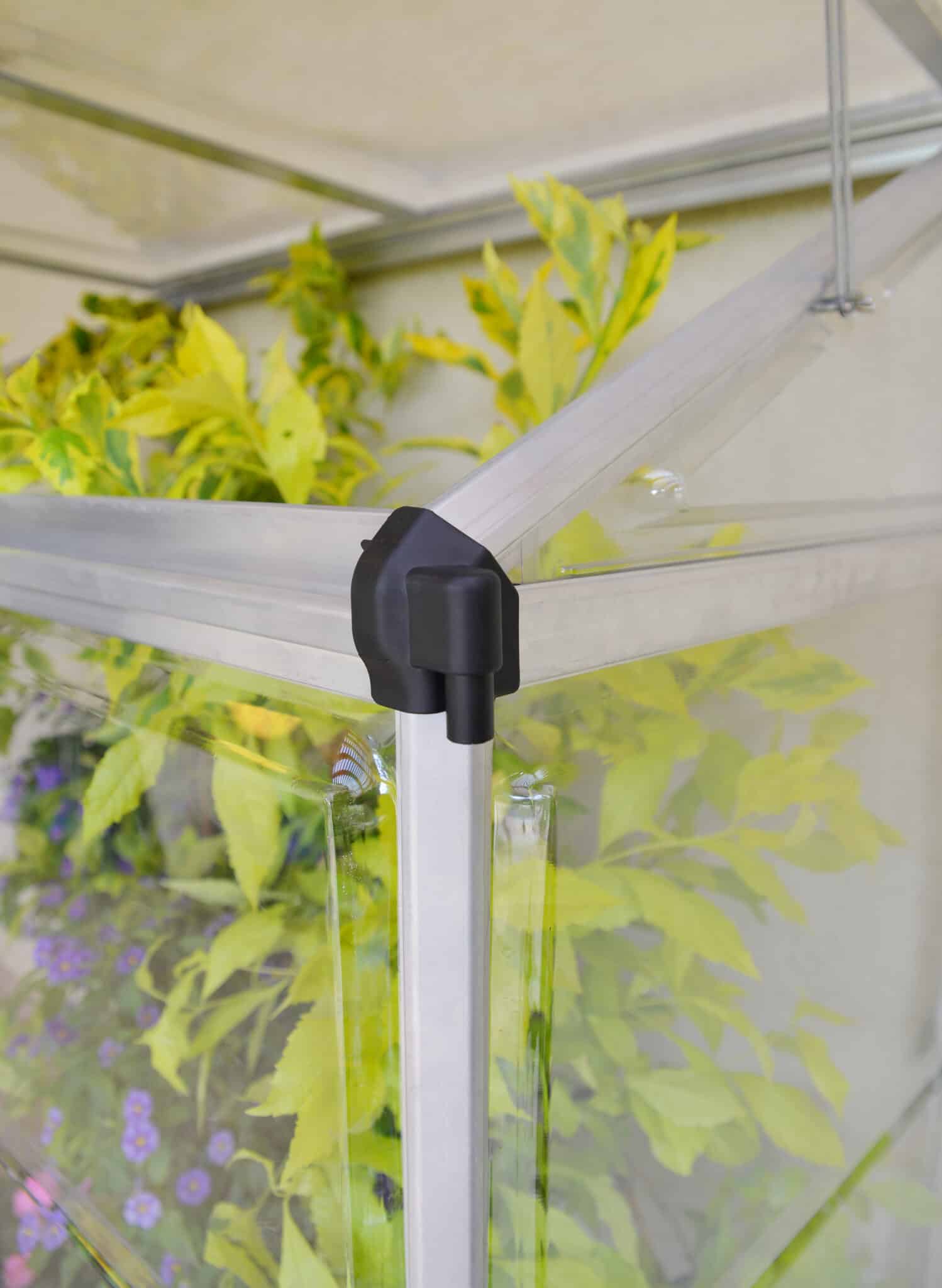 החממה מיוצרת מפוליקרבונט שקוף קריסטל ומסגרת אלומיניום עמידה בפני קורוזיה.