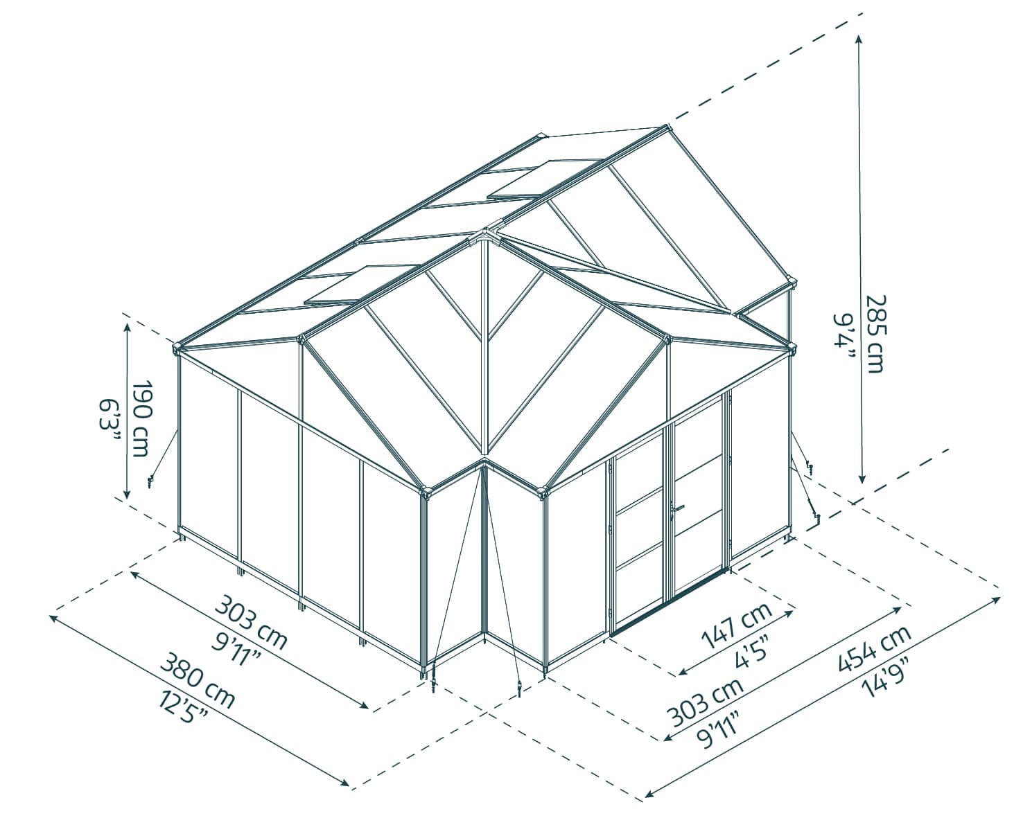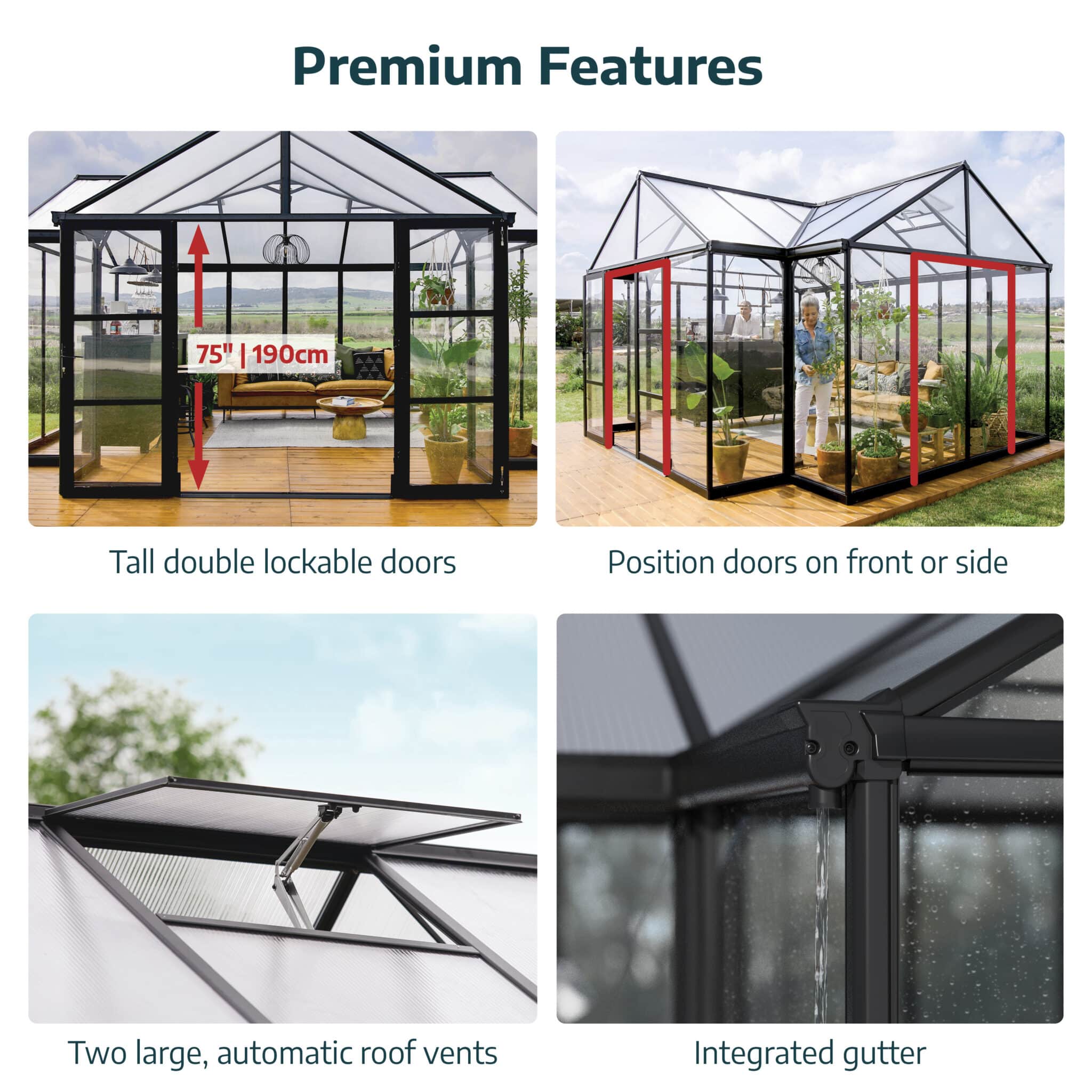 החממה מרווחת גם עבור כל פרויקט גינון שתוכלו לחשוב עליו, בכל ימות השנה. שטח הרצפה הגדול של חממה זו והתקרה הגבוהה יאפשרו לכם שפע של מקום לגידול צמחים.